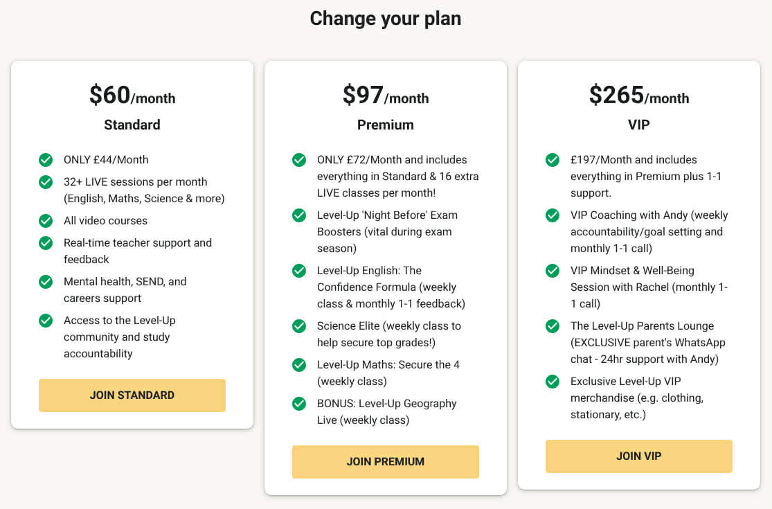 Skool shows prices in dollars as it’s a US platform, but rest assured, all support is 100% UK GCSE-based. This hasn’t stopped hundreds of students from thriving, getting top exam help, and boosting their grades. Don’t let the currency distract you—your teen’s success starts here!