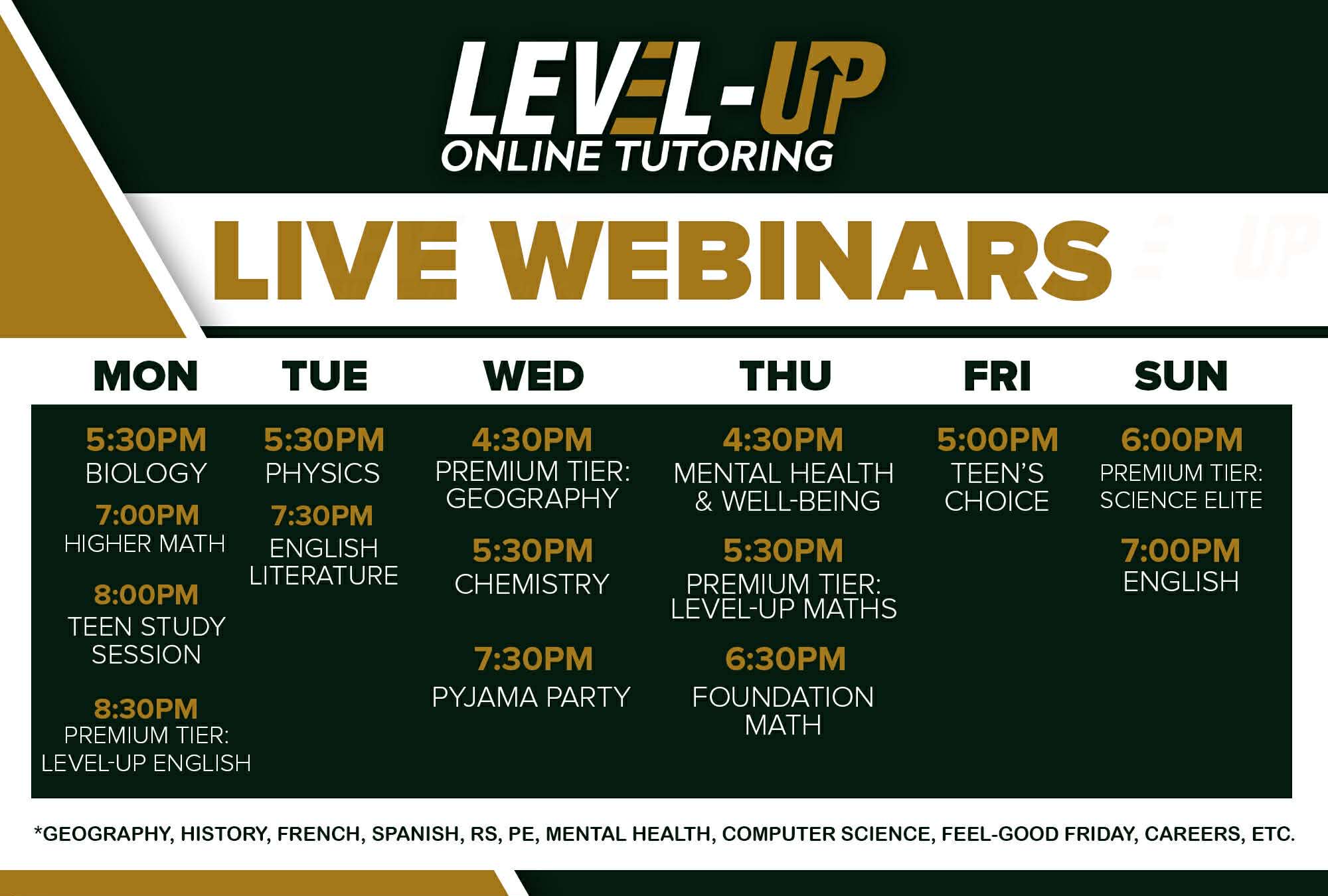 Level-Up Online Tutoring is a monthly subscription and is ridiculously good value for money – if you are not happy with the service you can simply ‘leave the group’ and no further payments will be made!